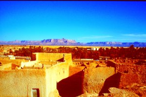 Oben auf dem Bild die Stadt Ghat im Süden von Libyen